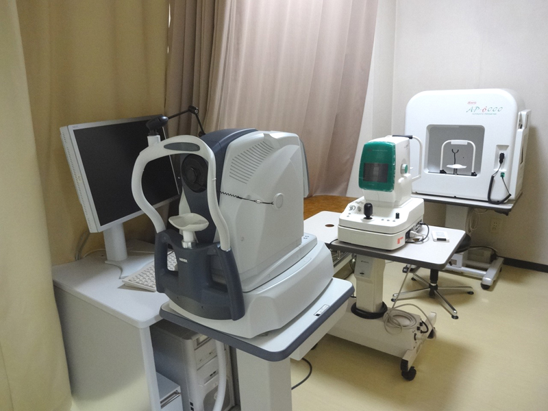 | 眼の奥にある神経が障害されることによって、眼の見える範囲が狭くなったり(視野狭窄)、見え方が悪くなったりする(視力低下)病気です。進行するまで気付きにくい病気であり、失明原因の第1位なので早期発見、早期治療が必要です。 当院では眼圧検査、眼底検査とともに自動視野検査、OCT(眼底三次元画像解析)検査により、診断・治療を行っております。 |